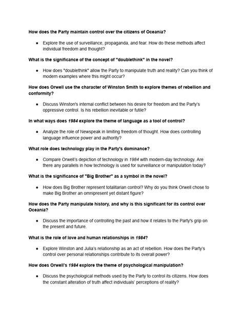 Download 1984 Discussion Questions And Answers Doc